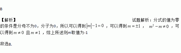 A. m=±1 B. m=-1 C. m=1 D. m的值不存在