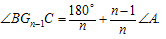已知△ABC中,∠ABC的n等分线与∠ACB的n等分线相交于G1、G2、G3,…、Gn-1,试猜想:∠BGn-1C与∠A的关系。(其中n≥2的整数)首先得到:
