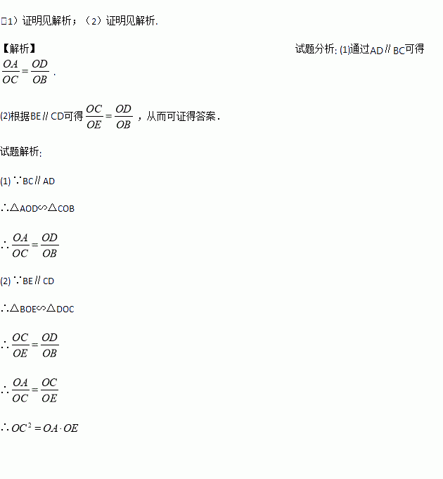 如图,梯形ABCD中,AD∥BC,对角线AC、BD交于点O,BE∥CD交CA延长线于E 求证: