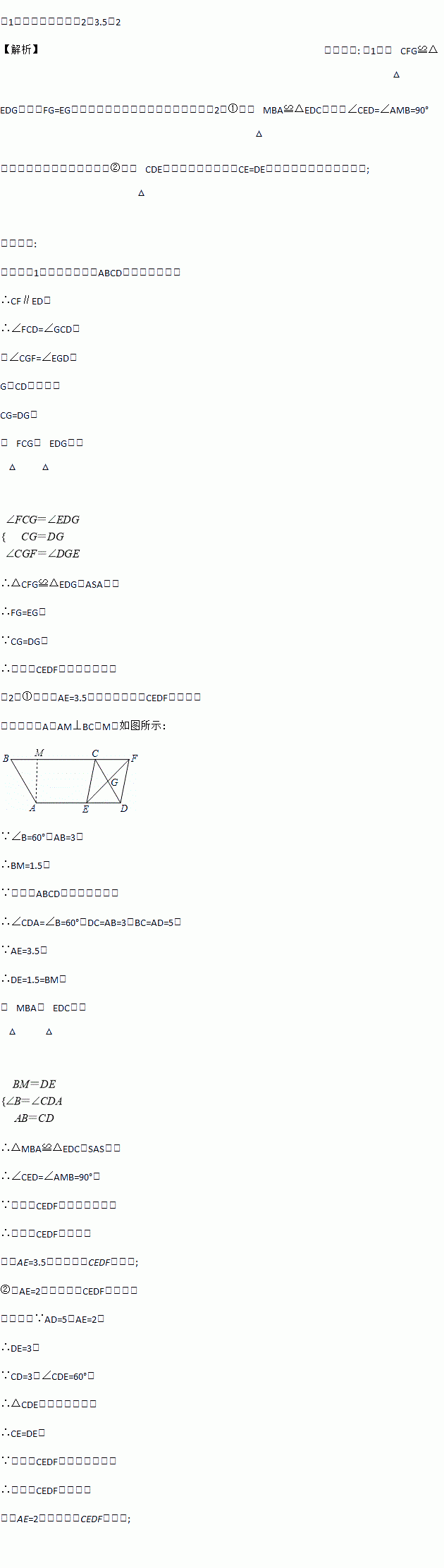 (2)① 当AE= 时,四边形CEDF是矩形;