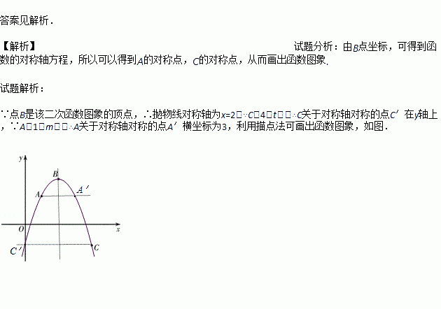 如图7,在平面直角坐标系中,已知某个二次函数的图象经过点A(1,m),B(2,n),C(4,t),且点B是该二次函数图象的顶点.请在图7中描出该函数图象上另外的两个点,并画出图象.