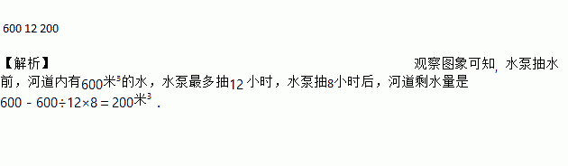 河道的剩水量Q(米3)和水泵抽水时间t(时)的关系图象如图,则水泵抽水前,河道内有______ 米3的水,水泵最多抽________ 小时,水泵抽8小时后,河道剩水量是________ 米3 .