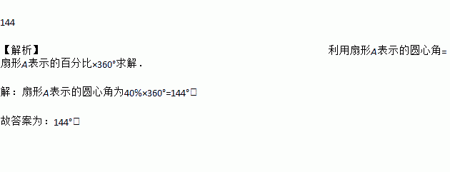 如图是地球表面的一部分,扇形A表示地球某几种水域占总面积的40%,则此扇形的圆心角为________.