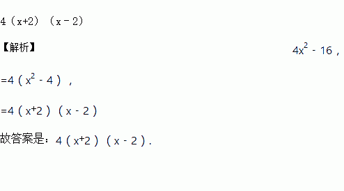 分解因式:4x2﹣16=_____.