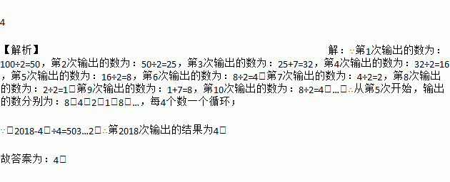 如图所示的运算程序中,若开始输入的x值为100,我们发现第1次输出的结果为50,第2次输出的结果为25,…,第2018次输出的结果为_________.