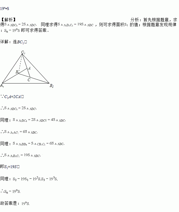 第一次操作,分别延长AB、BC、CA至点A1、B1、C1,使得A1B=2AB,B1C=2BC,C1A=2CA,顺次连接A1、B1、C1,得到△A1B1C1,记其面积为S1;