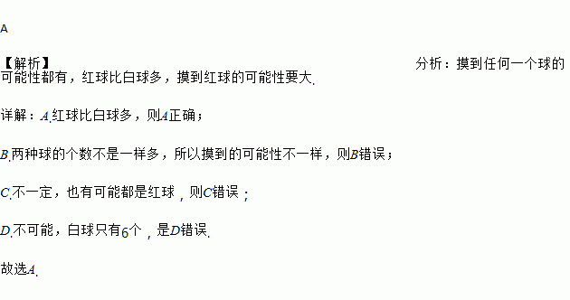 B. 从中随机摸出一个球, 摸到红球和白球的可能性一样大