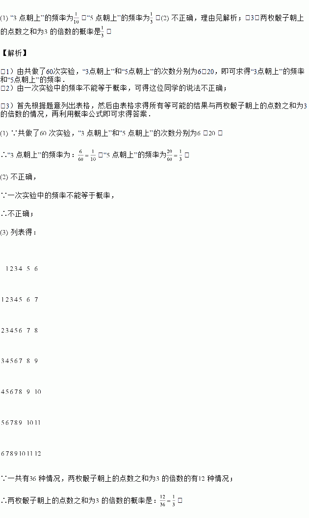 点朝上的概率最大”.这位同学的说法正确吗?为什么?![]()