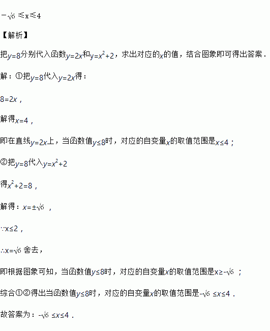 已知函数y=的图象如图所示,观察图象,则当函数值y≤8时,对应的自变量x的取值范围是________.
