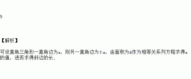 若直角三角形的两直角边之和为7,面积为6,则斜边长为_________.