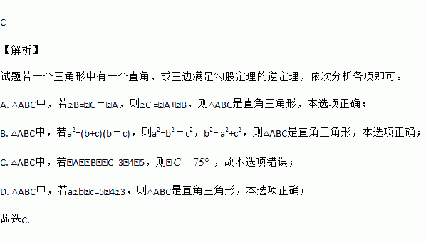 D. 在△ABC中,若a:b:c=5:4:3,则△ABC是直角三角形