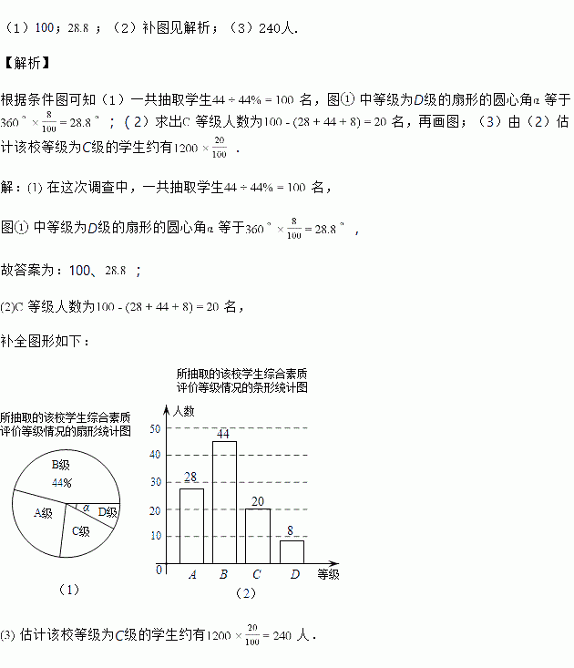 (3)若该校共有1200名学生,请你估计该校等级为C级的学生约有多少名.