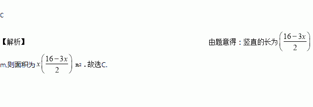 如图,用16m长的铝合金做成一个长方形的窗框.设长方形窗框的横条长度为m,则长方形窗框的面积为( )