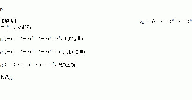 A. (-a)·(-a)2·(-a)3=-a5