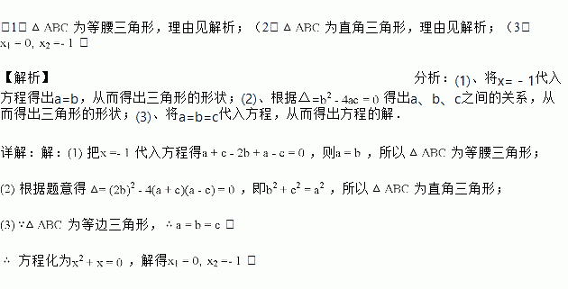 是等边三角形,试求这个一元二次方程的根.![]()