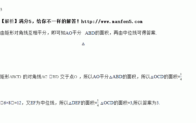 如图,矩形的对角线、交于点.若,,、分别是、的中点,则的面积为________.