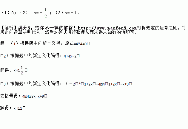 (3)若(﹣2)*(1*x)=x+9,求x的值.