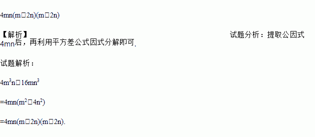 分解因式:4m3n-16mn3.