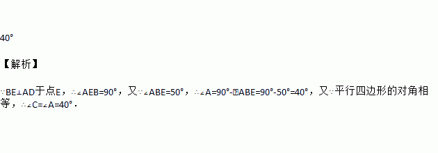 如图,在?ABCD中,BE⊥AD于点E,若∠ABE=50°,则∠C=_______.