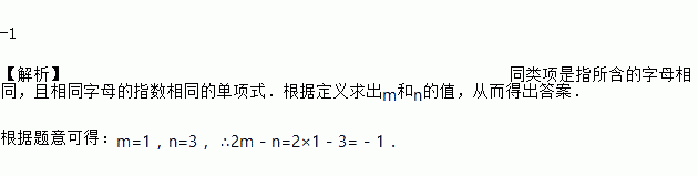如果﹣2xmy3与xyn是同类项,那么2m﹣n的值是_____.