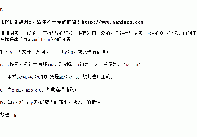 B. 不等式ax2+bx+c>0的解集是﹣1<x<5
