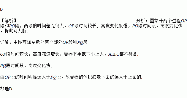 如图所示是实验室中常用的仪器,向以下容器内均匀注水,最后把容器注满,在注水过程中,容器内水面高度与时间的关系如图① 所示,图中PQ为一条线段,则这个容器是( )
