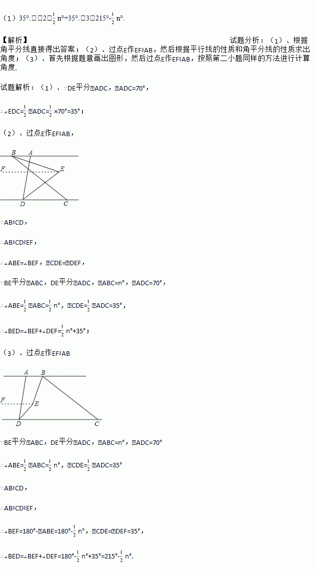 (2)若∠ABC=n°,求∠BED的度数(用含n的代数式表示);