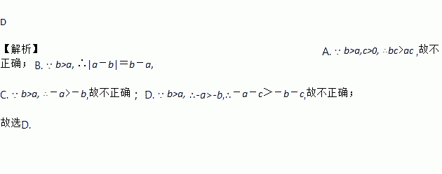 实数a,b,c在数轴上对应的点如图所示,则下列式子中正确的是( )