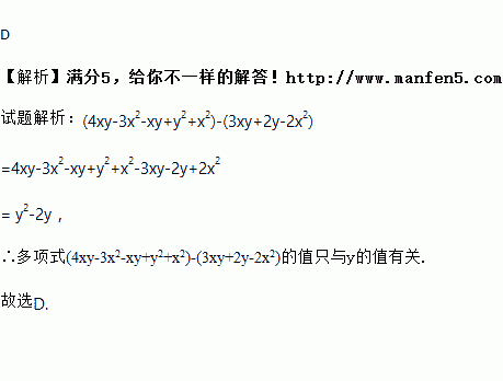 多项式(4xy-3x2-xy+y2+x2)-(3xy+2y-2x2)的值( )