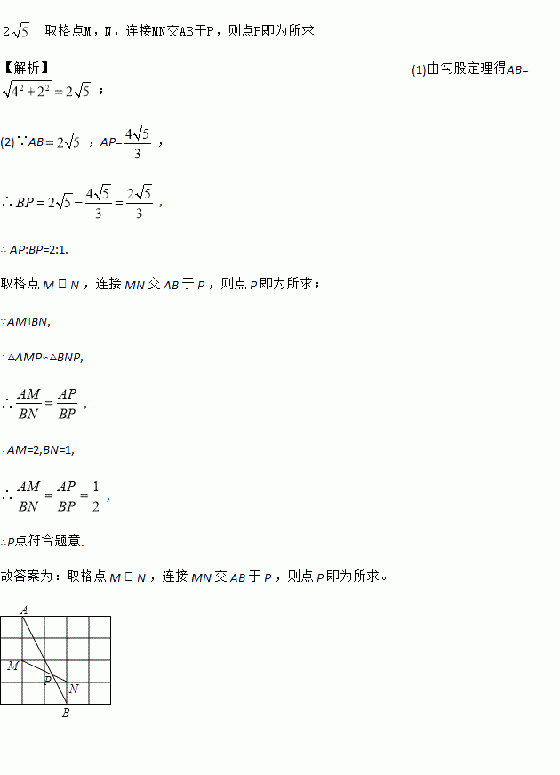 (Ⅱ)请利用网格,用无刻度的直尺在AB上作出点P,使AP=