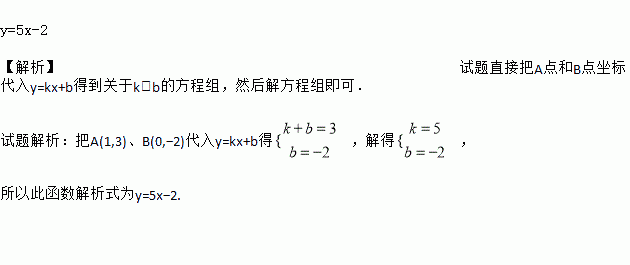 设一次函数y=kx+b(k≠0)的图象经过A(1,3)、B(0,-2)两点,求此函数的解析式.