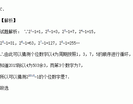 计算:21-1=1,22-1=3,23-1=7,24-1=15,25-1=31,…归纳各计算结果中的个位数字规律,猜测22015-1的个位数字是( )