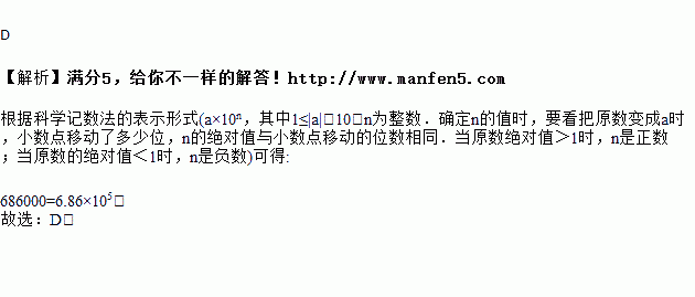 A. 686×104 B. 68.6×105 C. 6.86×106 D. 6.86×105