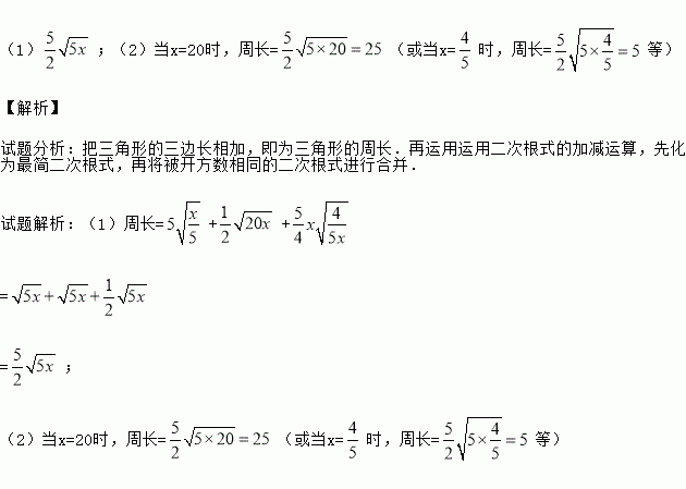 (2)请你给出一个适当的x的值,使它的周长为整数,并求出此时三角形周长的值.