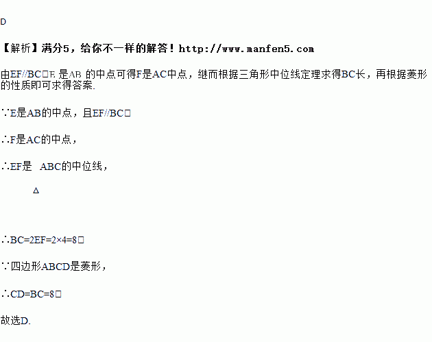 如图,在菱形中,是的中点,作,交于点、如果,那么的长为( )