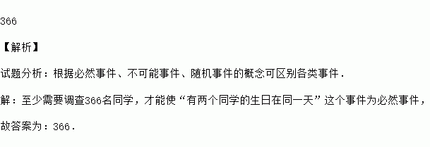 至少需要调查 名同学,才能使“有两个同学的生日在同一天”这个事件为必然事件.