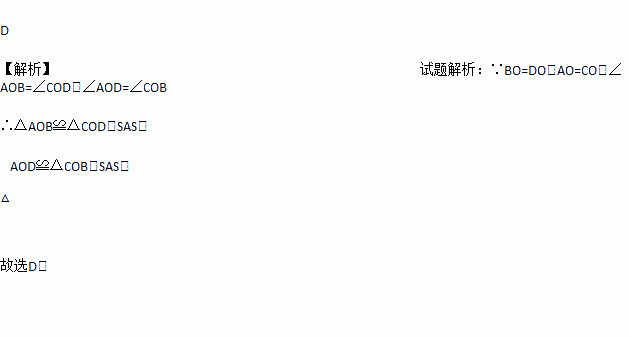 A. 只能证明△AOB≌△COD B. 只能证明△AOD≌△COB