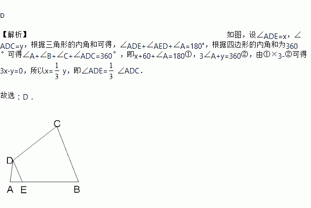 在四边形ABCD中,∠A=∠B=∠C,点E在边AB上,∠AED=60°,则一定有( )