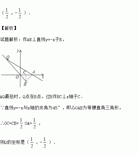 如图,点Q在直线y=-x上运动,点A的坐标为(1,0),当线段AQ最短时,点Q的坐标为 .
