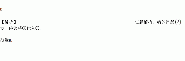 B 【解析】试题解析:错的是第步,应该将③代入②. 故选B.