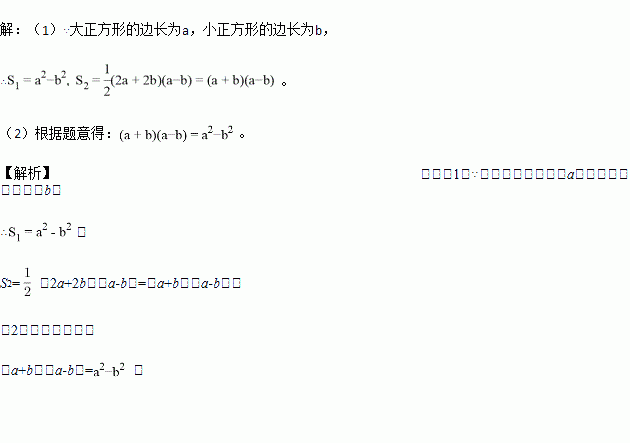 (1)设图1中阴影部分面积为S1,图2中阴影部分面积为S2,请直接用含a,b的代数式表示S1和S2;