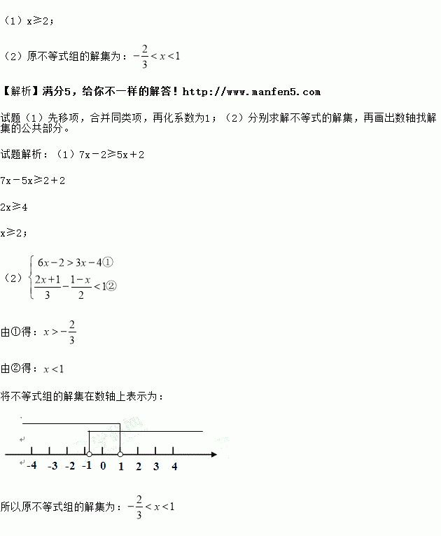 (1)7x-2≥5x+2 ;