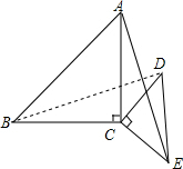 分析 (1)连接BD,由AC⊥BC,DC⊥EC,得到∠ACB=∠DCE=90°,证得∠BCD=∠ACE,得到△BCD≌△ACE,于是证得AE=BD;