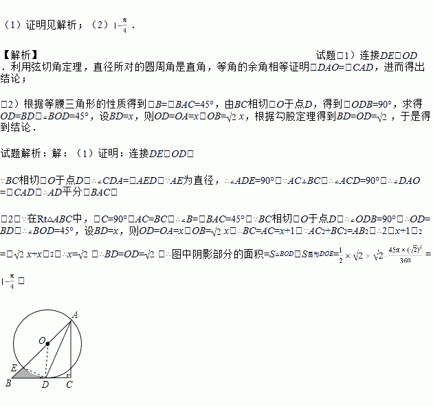如图,在Rt△ABC中,∠C=90°,AC=BC,点O在AB上,经过点A的⊙O与BC相切于点D,交AB于点E.