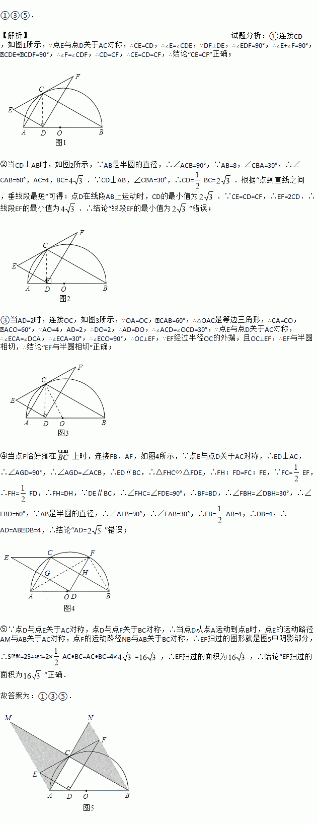 ③当AD=2时,EF与半圆相切;