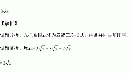 【解析】试题分析:先化简二次根式,然后合并同类二次根式即可.