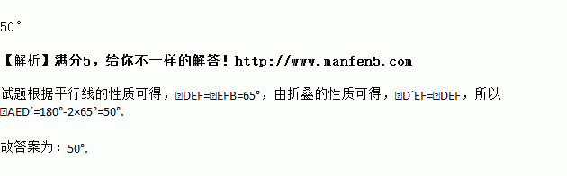 如图,把一个长方形纸片沿EF折叠后,点D,C分别落在D′,C′的位置.若∠EFB=65°,则∠AED′的度数为_________.