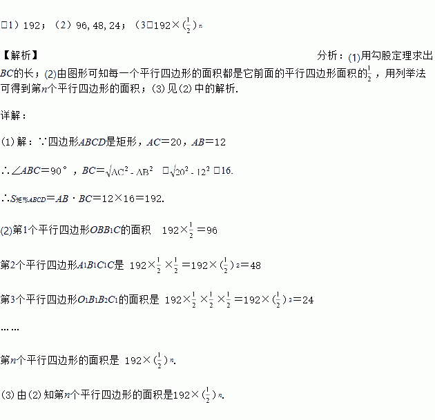 如图所示,在矩形ABCD中,AB=12,AC=20,两条对角线相交于点O.以OB、OC为邻边作第1个平行四边形OBB1C,对角线相交于点A1,再以A1B1、A1C为邻边作第2个平行四边形A1B1C1C,对角线相交于点O1;再以O1B1、O1C1为邻边作第3个平行四边形O1B1B2C1…依此类推.