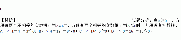 A. x2﹣x+1=0 B. x2﹣2x+3=0 C. x2+x﹣1=0 D. x2+4=0