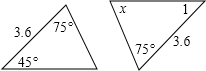 ∴∠x=180°-45°-75°,